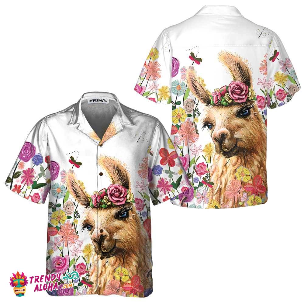 Colorful Flower With Alpaca Hawaiian Shirt, Floral Alpaca Shirt, Funny Alpaca Print Shirt For Men & Women