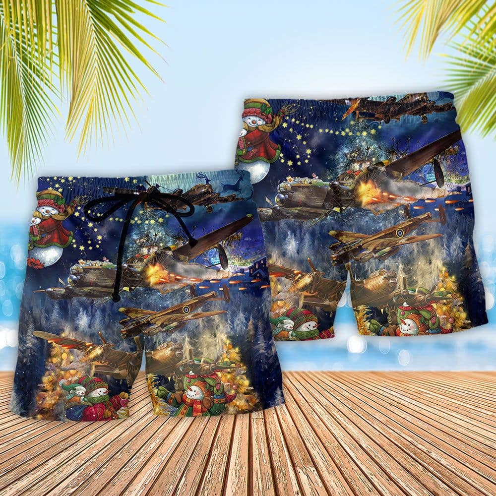 Combat Aircrafts Merry Christmas Awesome Trendy KLA Hawaiian Beach Shorts