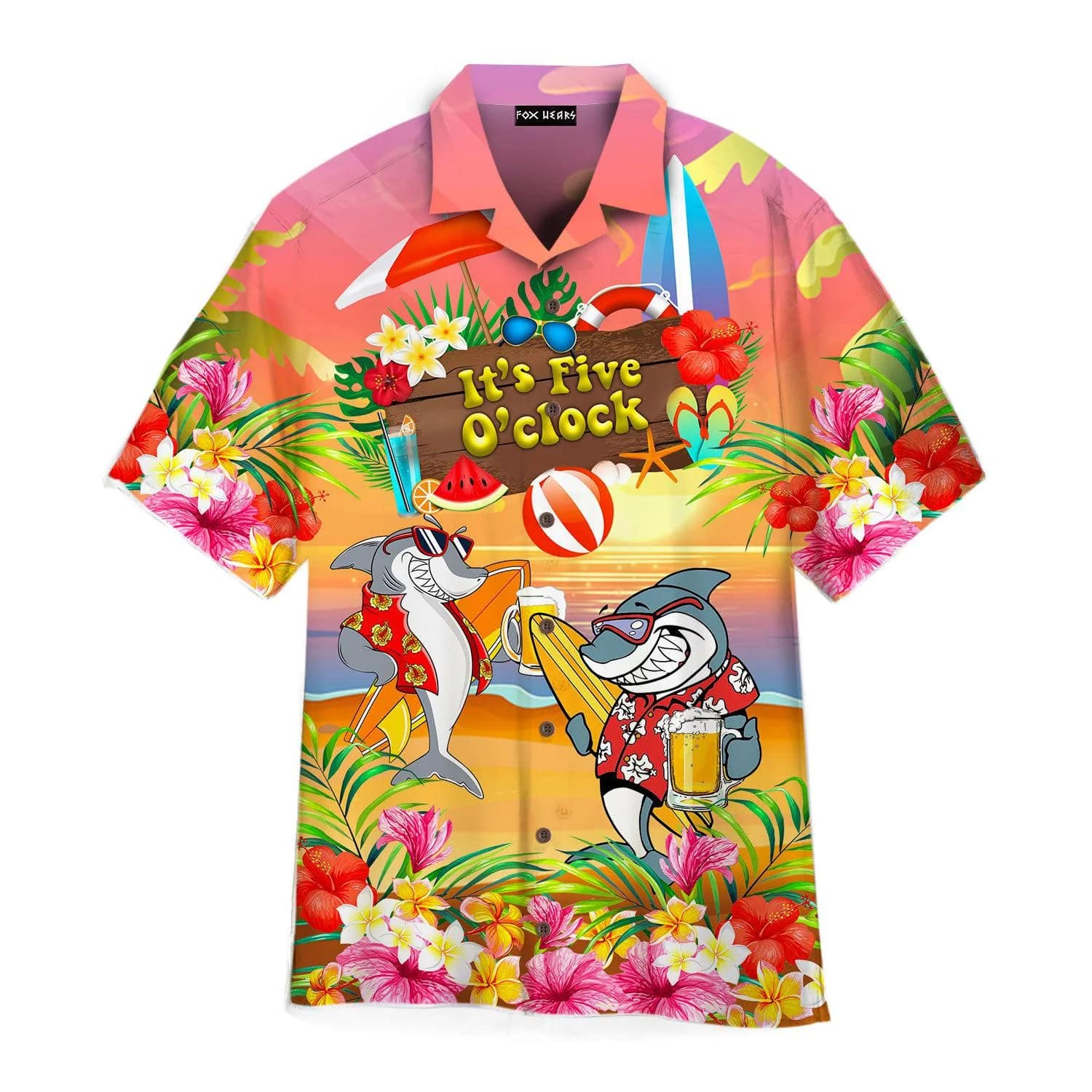 Cool Shark Drinking Beer Its 5 Oclock Somewhere Hawaiian Shirt For