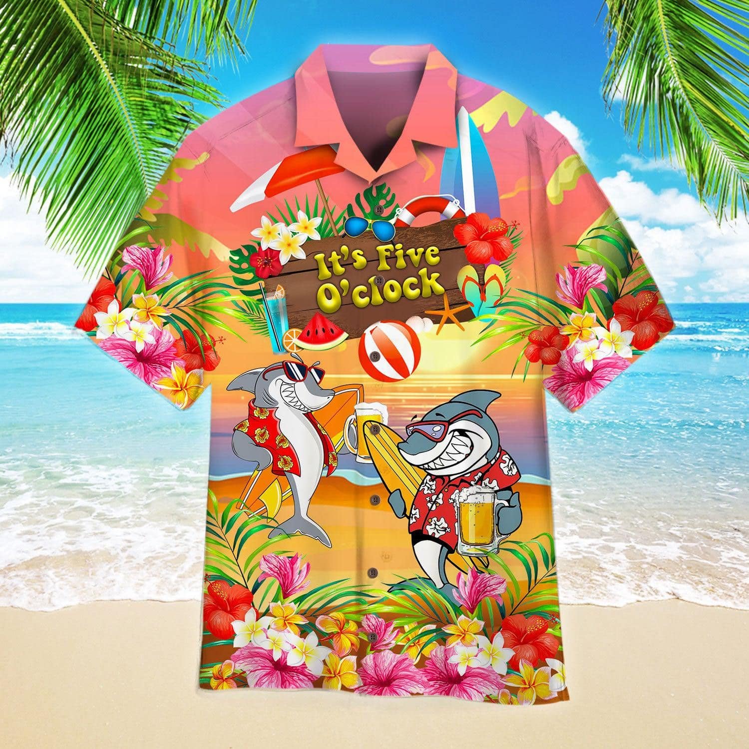 Cool Shark Drinking Beer Its 5 Oclock Somewhere Trendy Hawaiian Shirt For