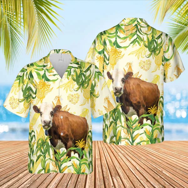 Corn Farm Simmental 3D Trendy Hawaiian Shirt, Cow Trendy Hawaiian Shirt, Summer Gifts For Men And Women