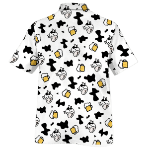 Cow And Beer Cow Skin Pattern Black And White Theme Trendy Hawaiian Shirt
