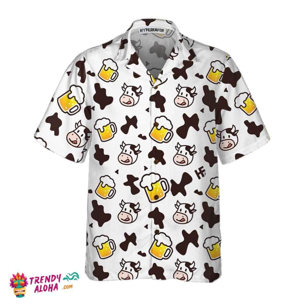 Cow And Beer Mug Seamless Pattern Cow Hawaiian Shirt, Funny Cow Shirt For Men And Women, Best Gift For Cow Lover