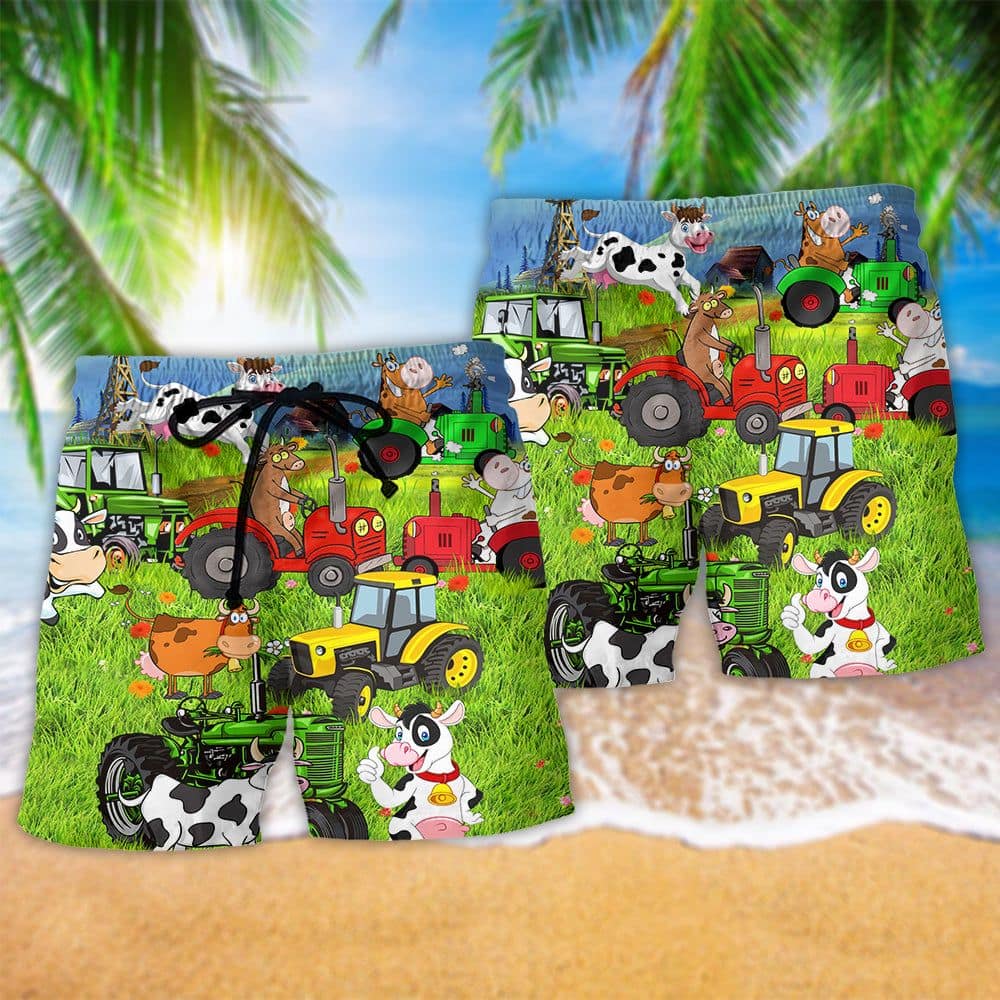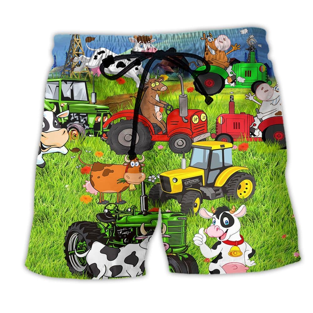 Cow Happy Everyday With Life Trendy KLA Hawaiian Beach Shorts