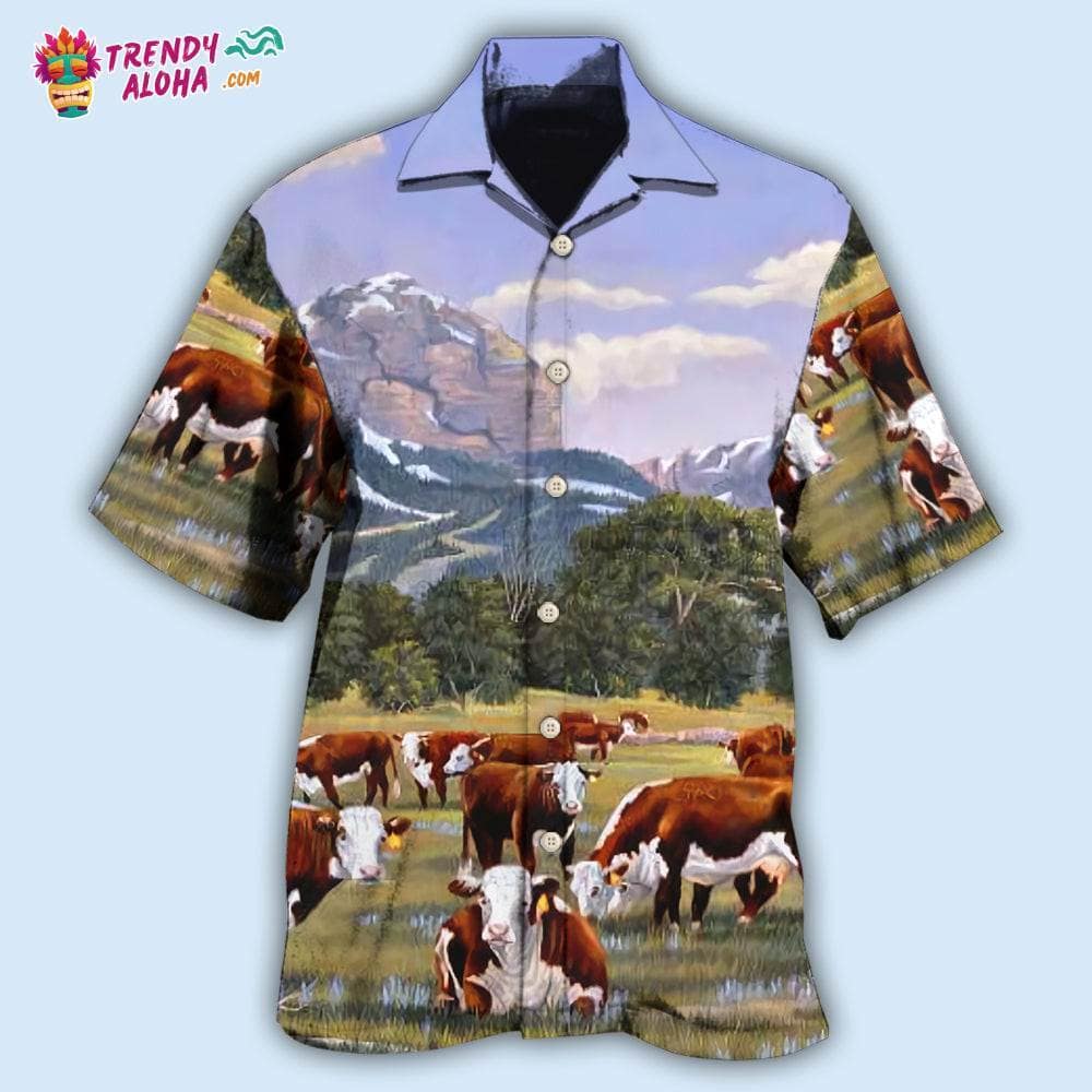 Cow Hereford Cow Beautiful Landscape Hawaiian Shirt – Trendy KLA