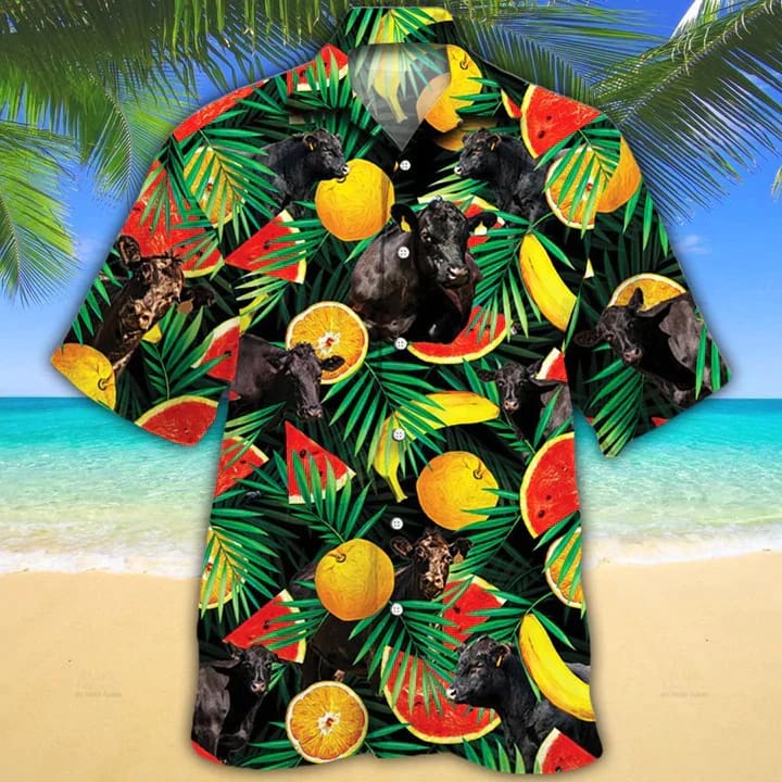 You’re viewing Cow Trendy Hawaiian Shirt – Black Angus Cattle Lovers Tropical Fruits Trendy Hawaiian Shirt – KLA Shirt For Cow Lovers.