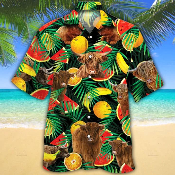 Cow Trendy Hawaiian Shirt – Highland Cattle Lovers Tropical Fruits Trendy Hawaiian Shirt – KLA Shirt For Cow Lovers
