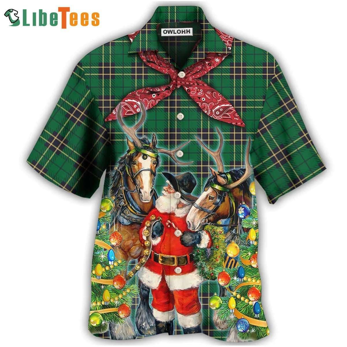 Cowboy Santa Christmas Green, Santa Trendy Hawaiian Shirt Perfect Gifts For Your Loved Ones