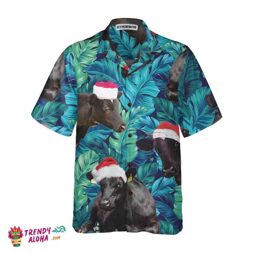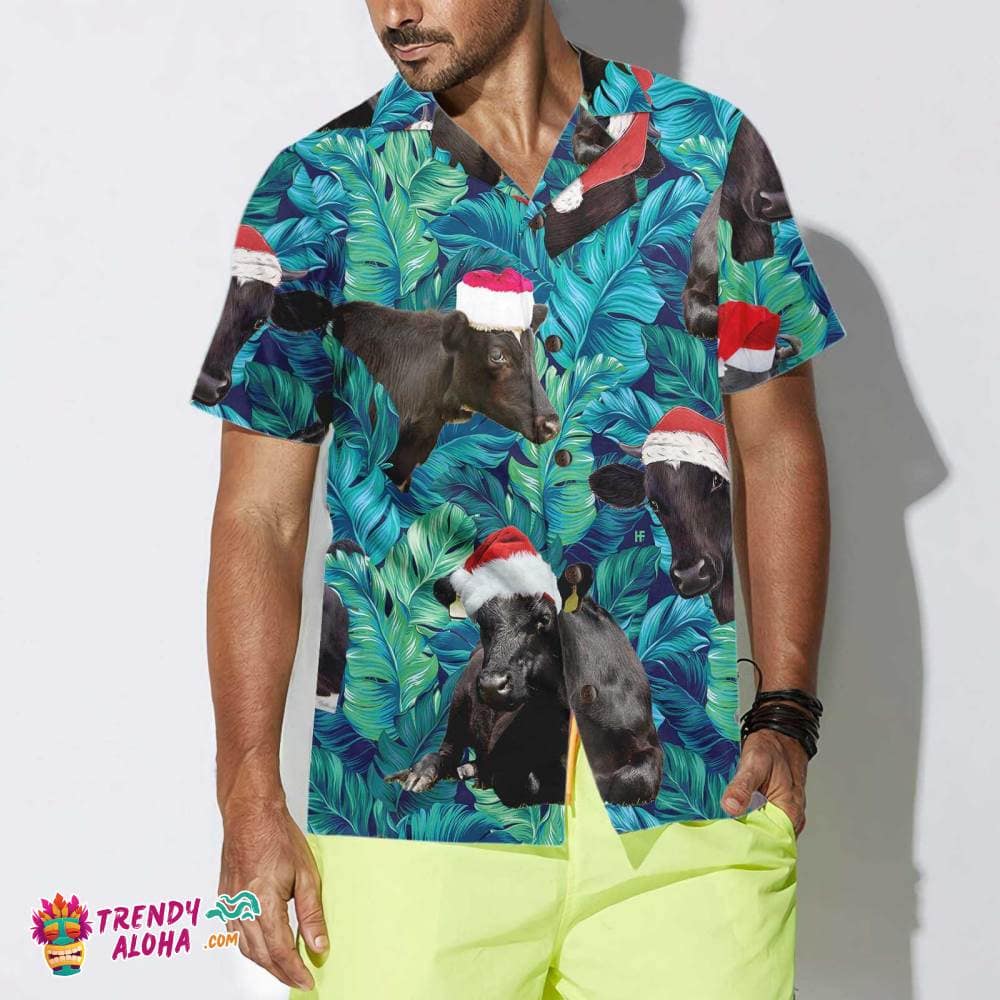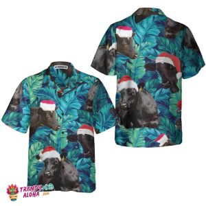 You’re viewing Cows Black Cattle Wear Santa Hat Hawaiian Shirt, Tropical Leaves Pattern Christmas Shirt, Best Gift For Christmas.