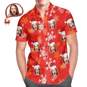 Custom Face Christmas Snowflake Men’s Hawaiian Shirt Print Your Own Personalized Shirt For Him