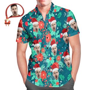 Custom Face Men’s All Over Print Christmas Hawaiian Shirt Merry Xmas Is Coming Here