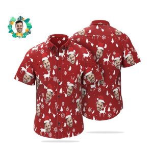 Custom Face Christmas Red Hawaiian Shirts Personalized Photo Shirts Gift For Men
