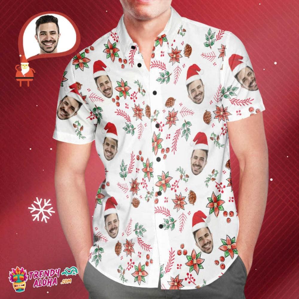 Custom Face Christmas Pattern Trendy KLA Hawaiian Shirts Funny Personalized Photo Trendy KLA Hawaiian Shirt For Men