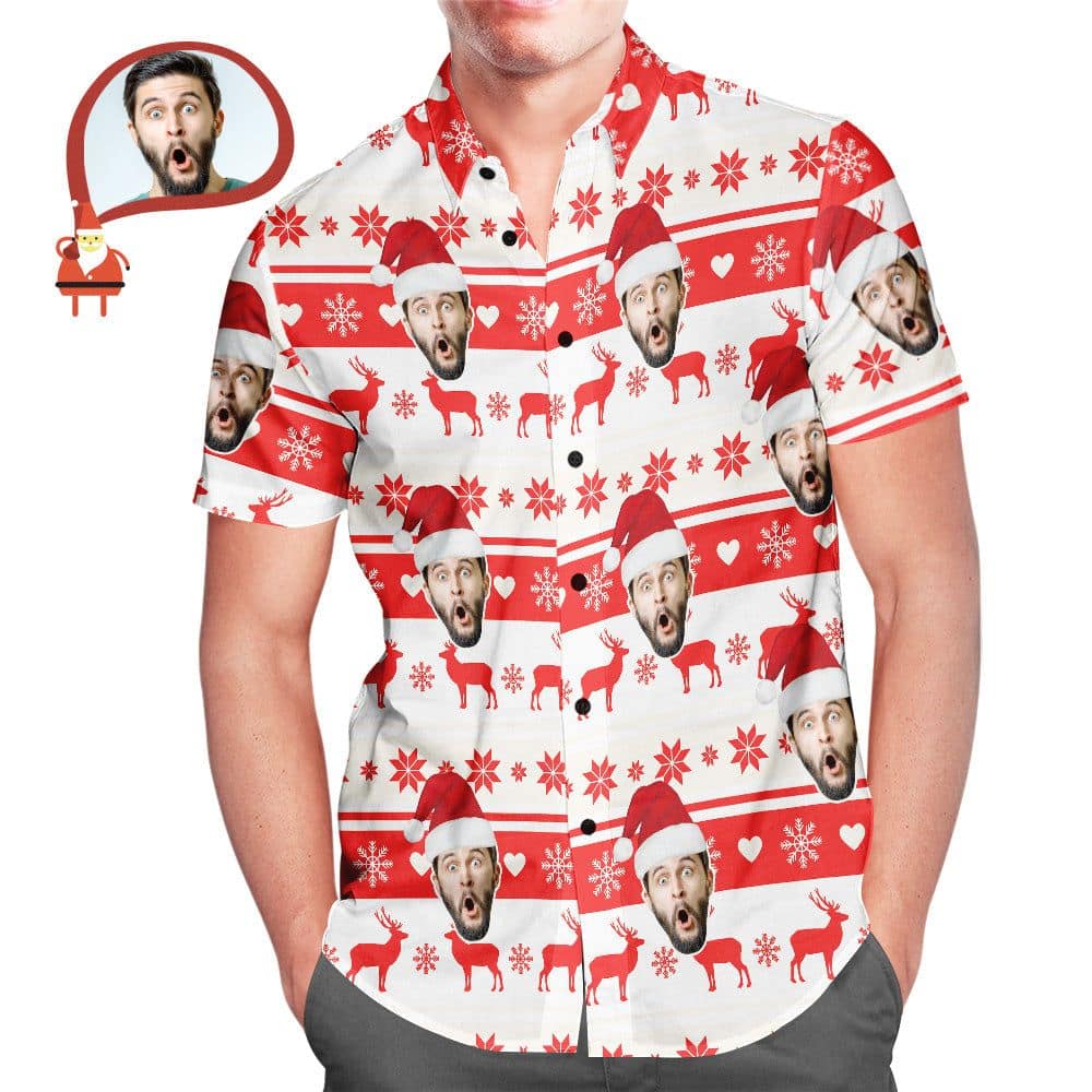 You’re viewing Custom Face Classic Christmas Moose Men’s All Over Print Hawaiian Shirt Christmas Gift.