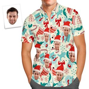 Custom Face Christmas Pattern Hawaiian Shirts Funny Personalized Photo Hawaiian Shirt For Men
