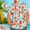 Custom Face Hawaiian Shirts Personalized Photo Flamingo On Christmas Shirt For Men