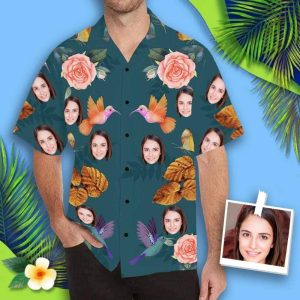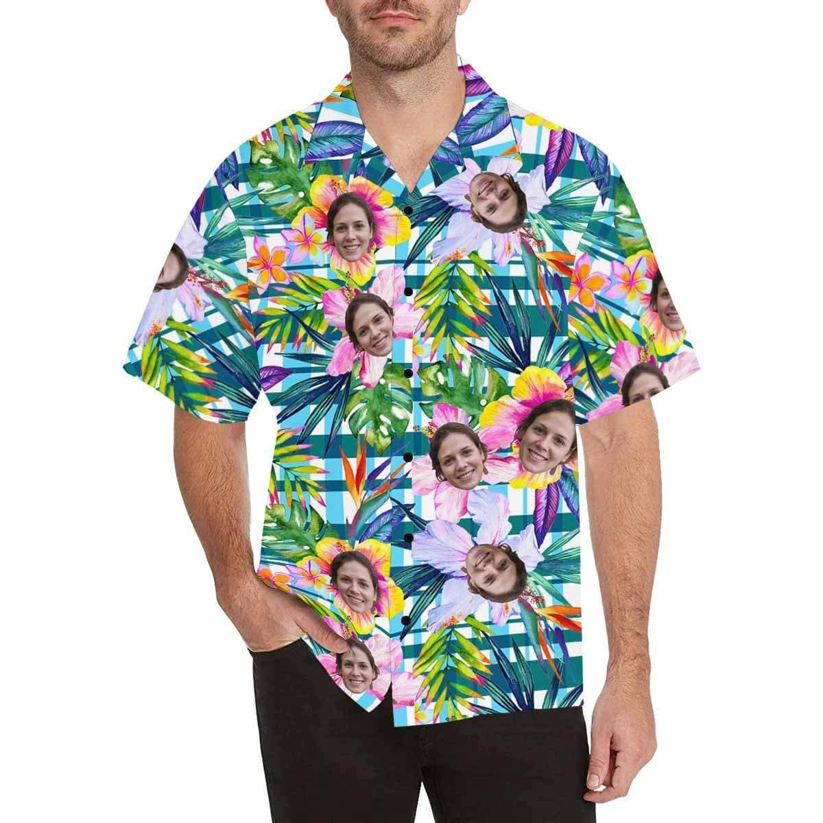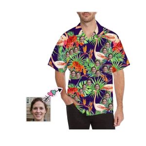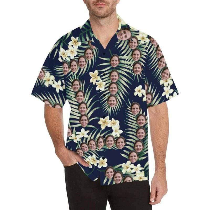 Custom Face Hawaiian Shirts Personalised Photo Gift Men’s Christmas Shirts Flower And Leaves