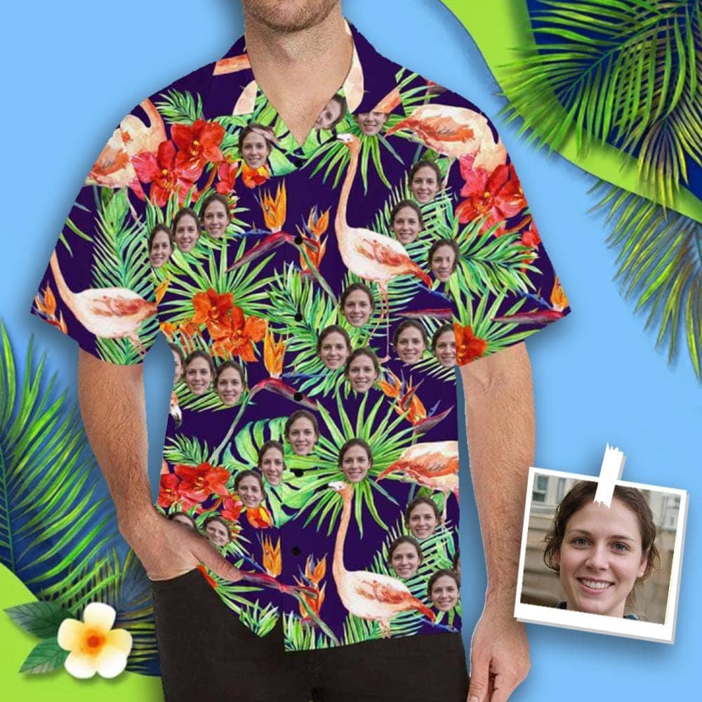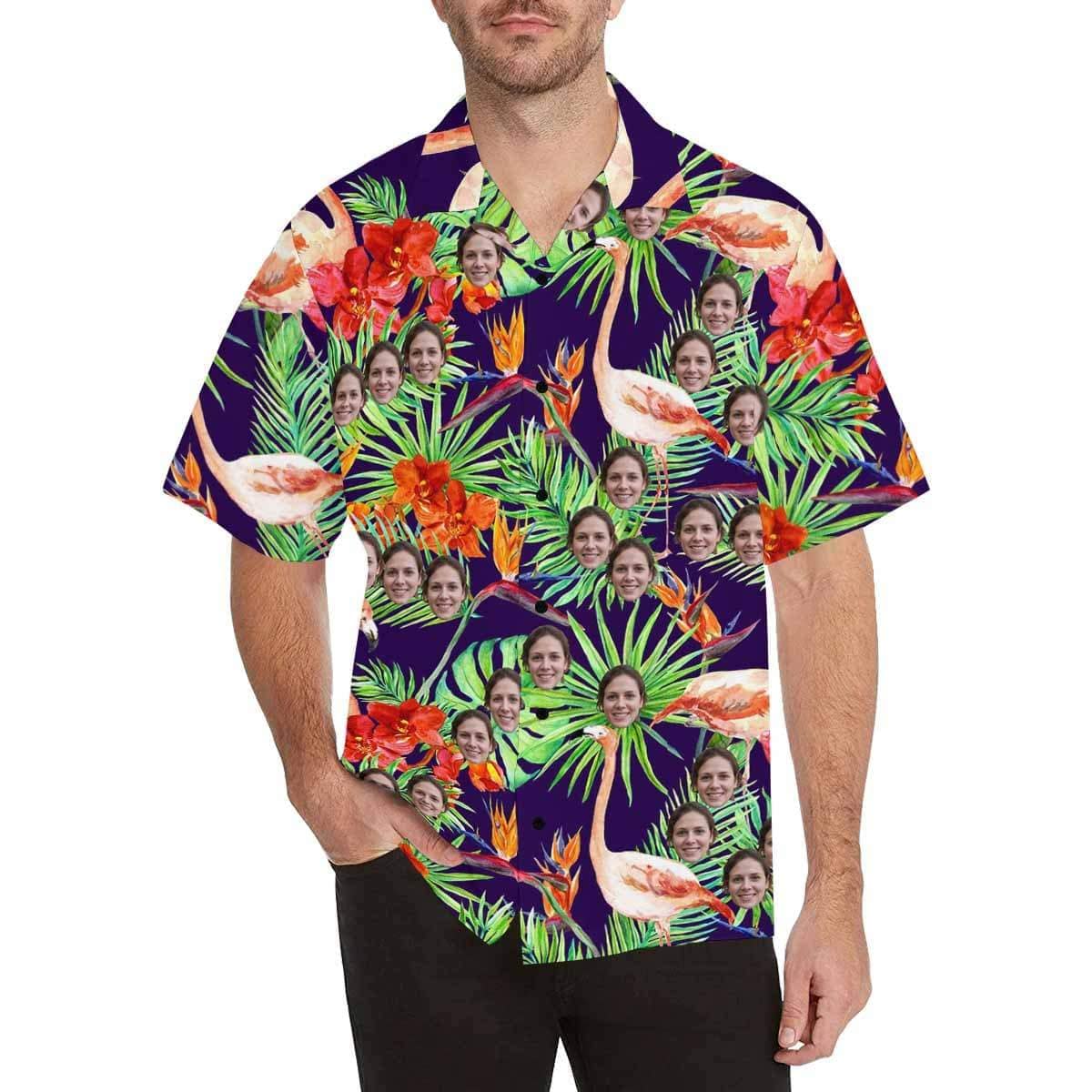 Custom Men’s Hawaiian Shirt With Face Flamingo Leaves