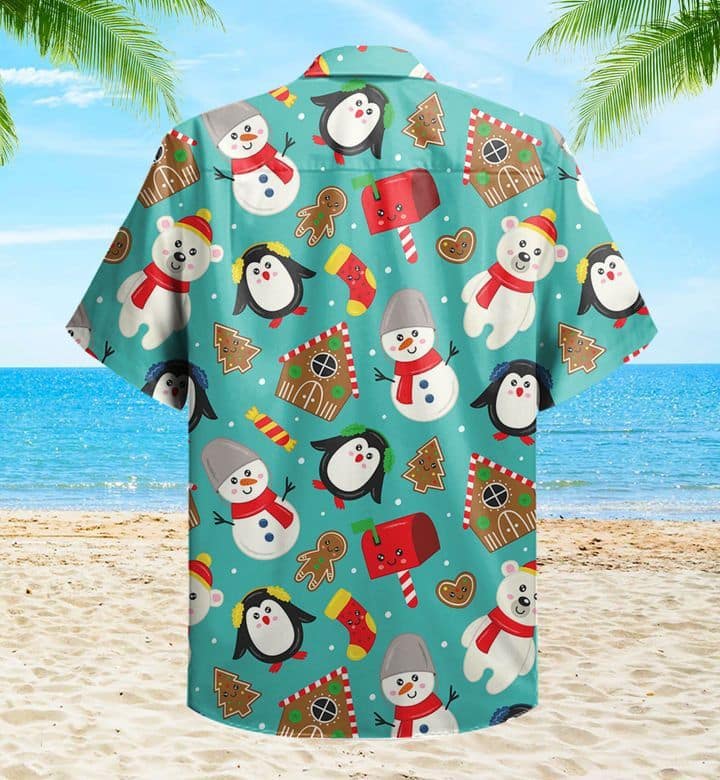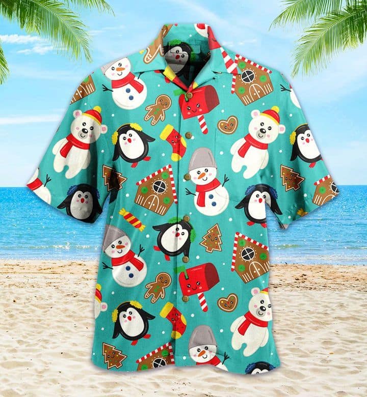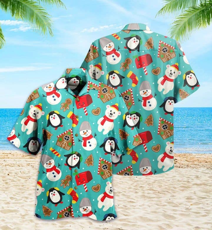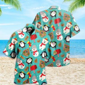 Cute Christmas Penguin Polar Bear Green Trendy Hawaiian Shirt 3D Summer Gifts