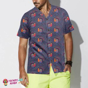 Autumnal Turkey with Leaves Unisex Hawaiian Shirt for Thanksgiving Day
