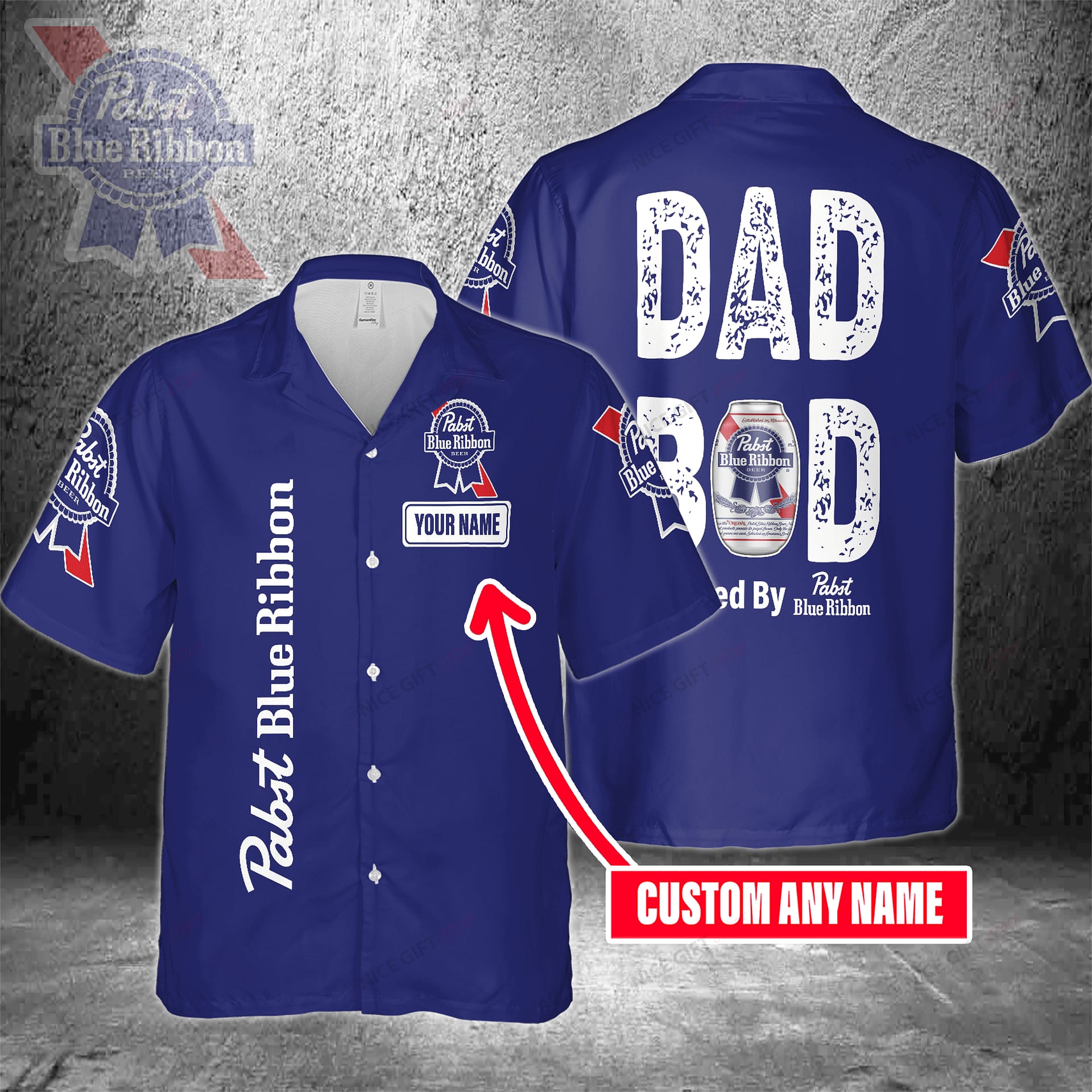 Dad Bod Powered By Pabst Blue Ribbon Custom Name Hawaiian Shirt