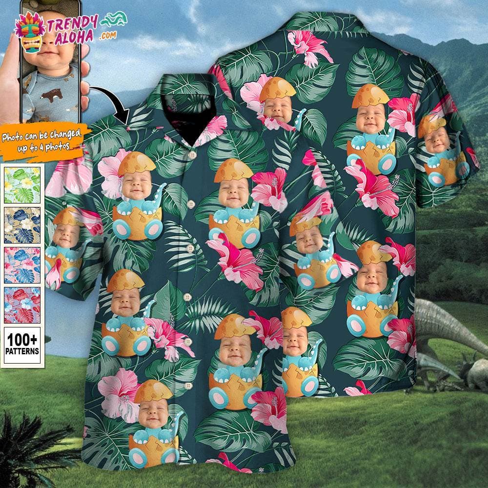 Dinosaur Funny Tropical Style Custom Photo – Hawaiian Shirt – Personalized Photo Gifts Hawaiian Shirt – Trendy KLA
