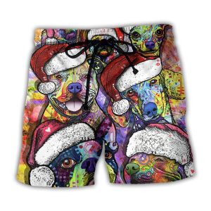 Dog Christmas Colorful Art Style Trendy KLA Hawaiian Beach Shorts