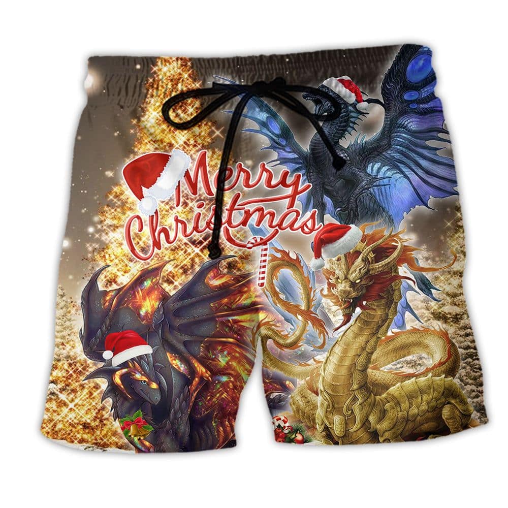 You’re viewing Dragon Merry Christmas Gold And Black Trendy KLA Hawaiian Beach Shorts.