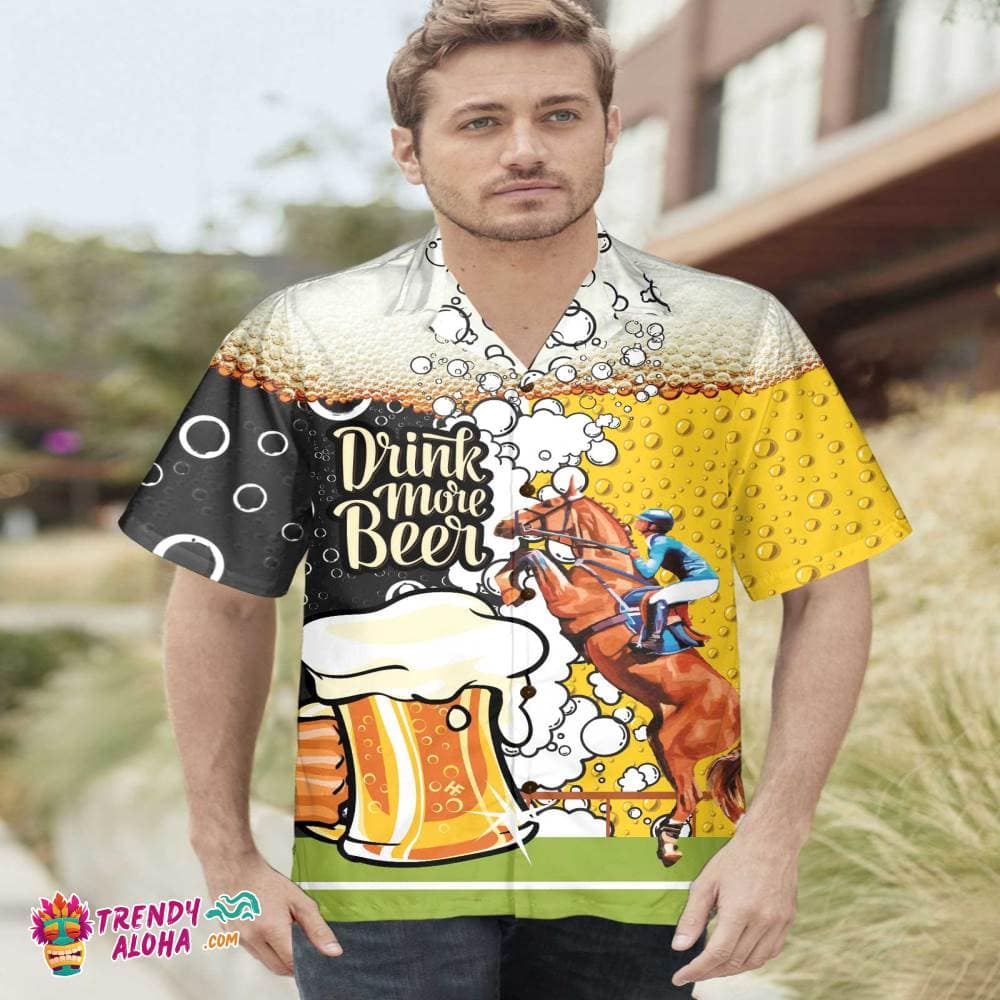 You’re viewing Drink More Beer And Racing Horse Hawaiian Shirt, Beer Mug Pattern Shirt, Beer Hawaiian Shirt, Best Gift For Beer Lovers.