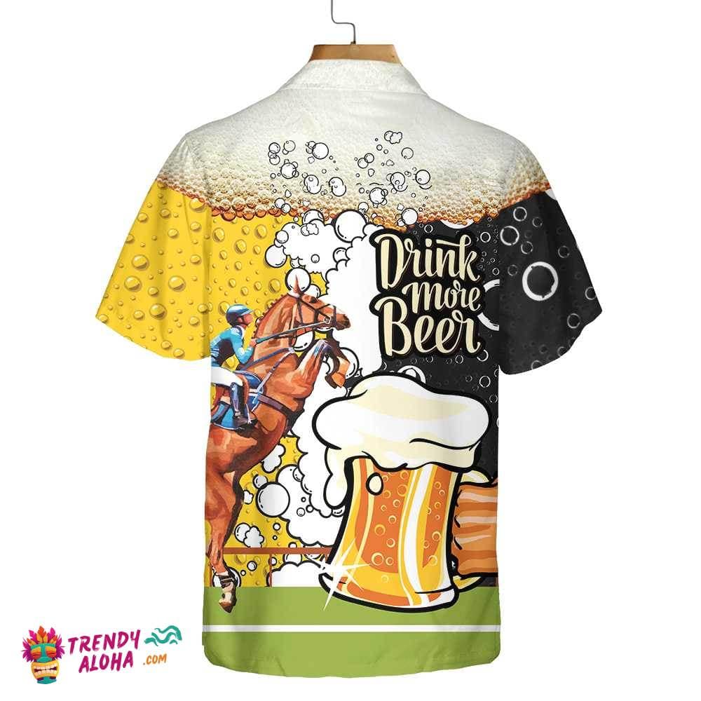 Drink More Beer And Racing Horse Hawaiian Shirt, Beer Mug Pattern Shirt, Beer Hawaiian Shirt, Best Gift For Beer Lovers