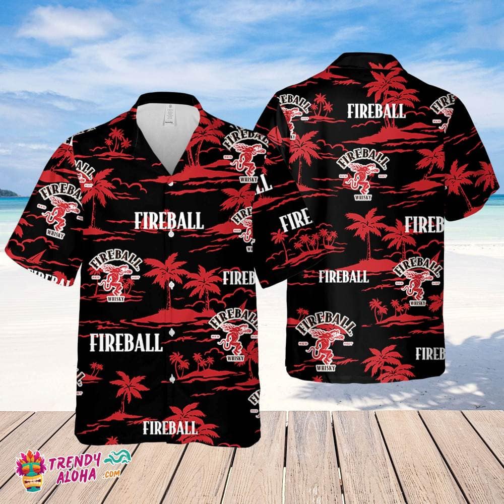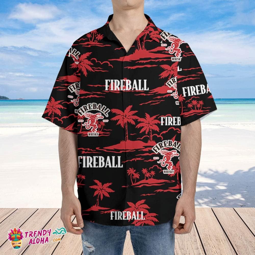 Fireball Hawaiian Beach Pattern Shirt, Beer Summer Party Hawaiian Shirt, Schlitz Beer Shirt