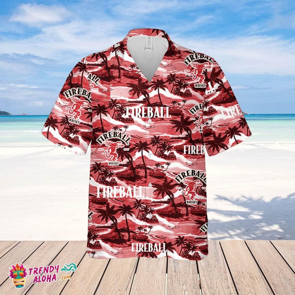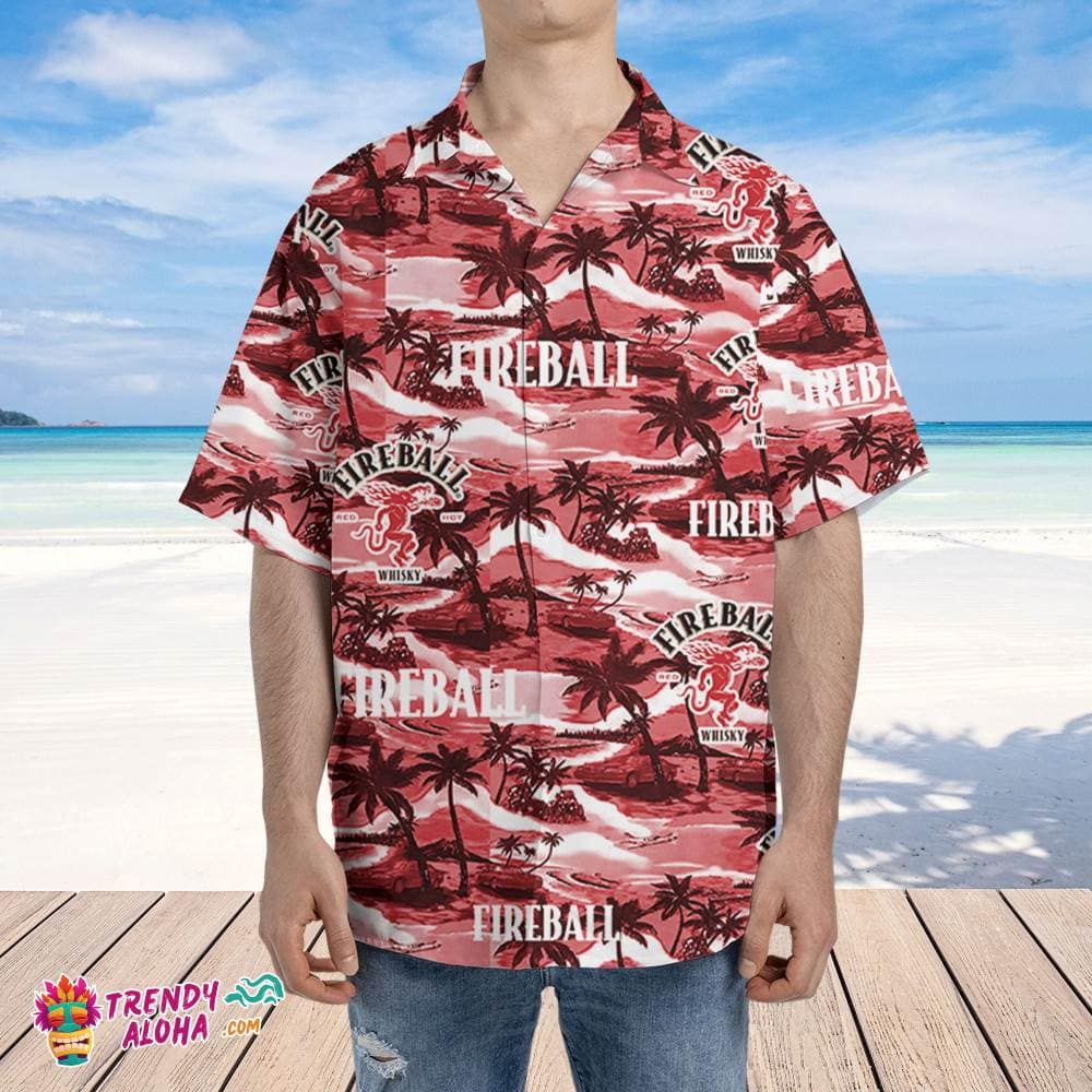 Fireball Hawaiian Sea Island Pattern Shirt, Beer Summer Party Hawaiian Shirt, Schlitz Beer Shirt