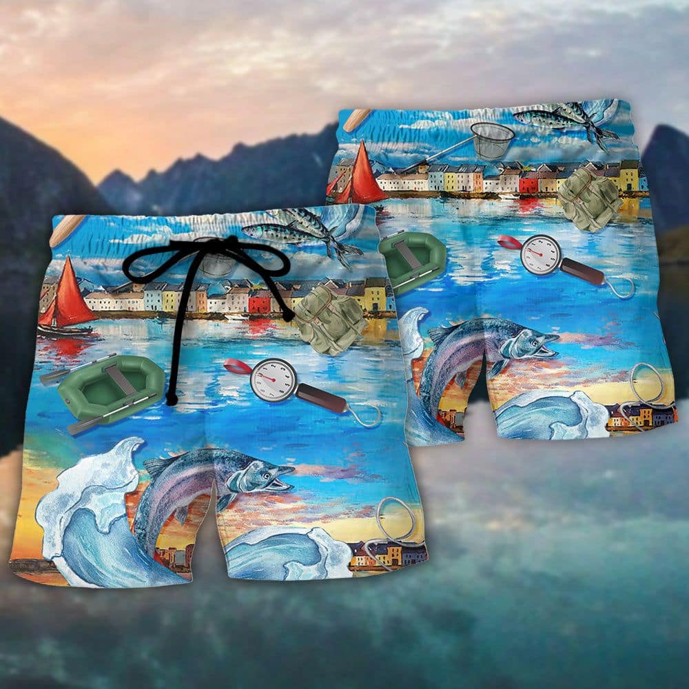 Fishing Love Ocean Blue Christmas Night Trendy KLA Hawaiian Beach Shorts