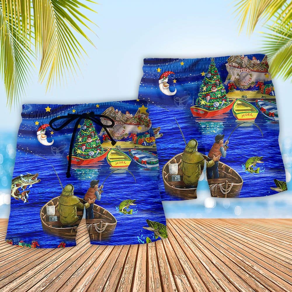 Fishing Lover Amazing Christmas Night Trendy KLA Hawaiian Beach Shorts