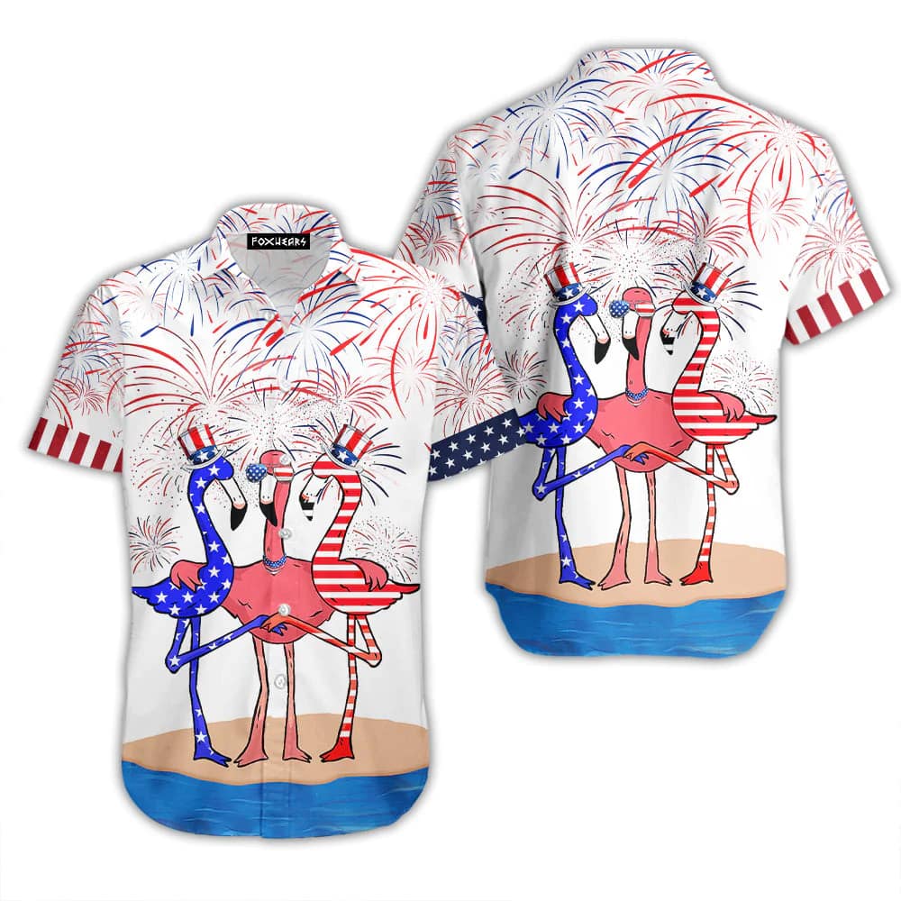 Flamingo American Flag Firework Hawaiian Shirt For KLA Shirt