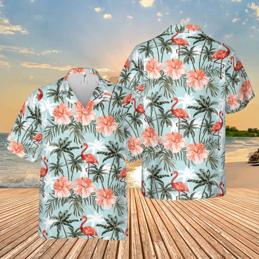 You’re viewing Flamingo And Palm Tree Trendy Hawaiian Shirt, Gift For Wife.