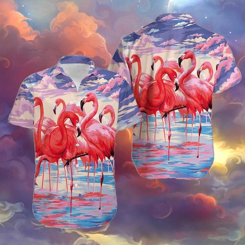 You’re viewing Flamingo Colorful Clouds Unisex Trendy Hawaiian Shirt, Flamingo Short Sleeve Hawaiian KLA Shirt, Flamingo Trendy Hawaiian Shirt For Men, Women.