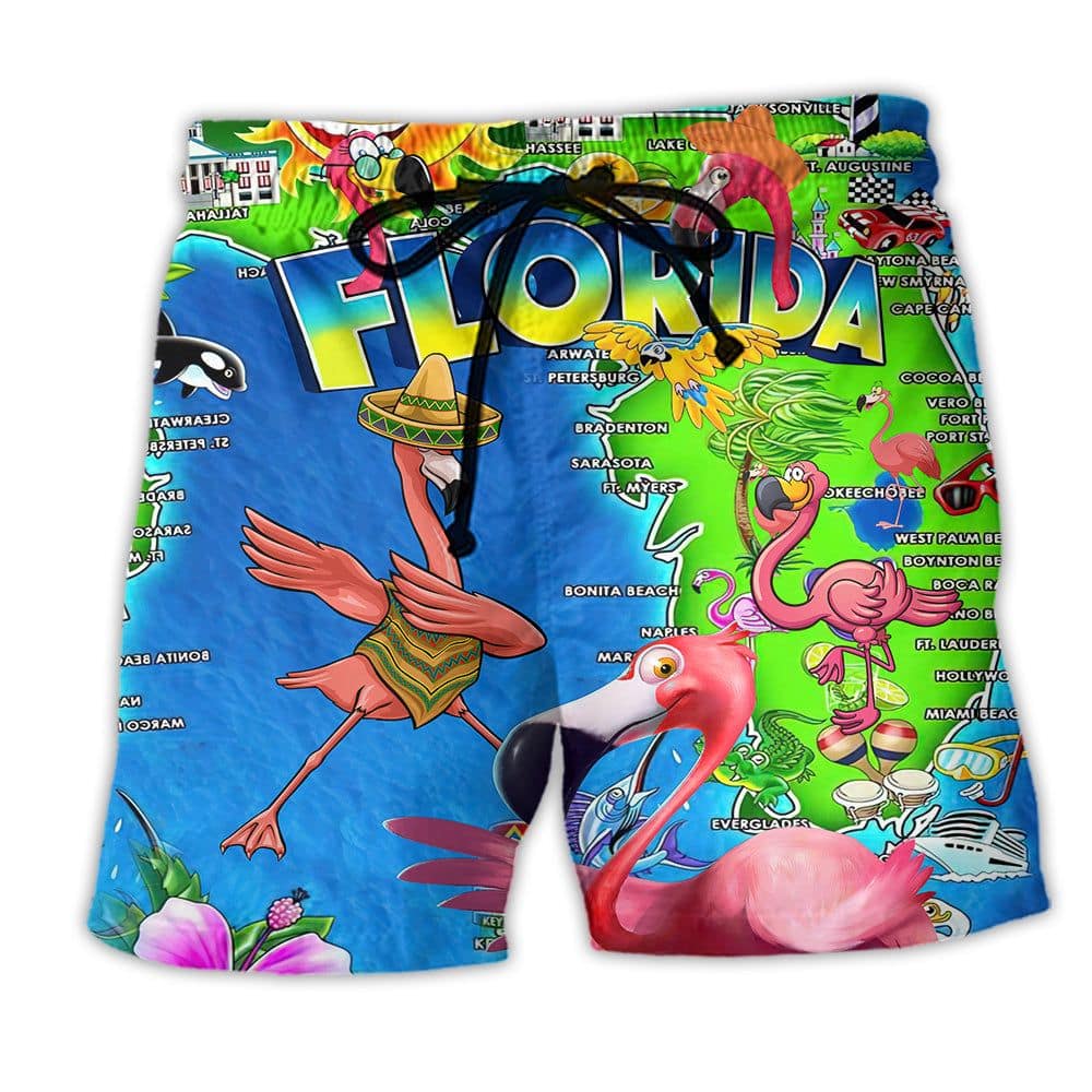 You’re viewing Flamingo Go To Florida To See Flamingo Trendy KLA Hawaiian Beach Shorts.