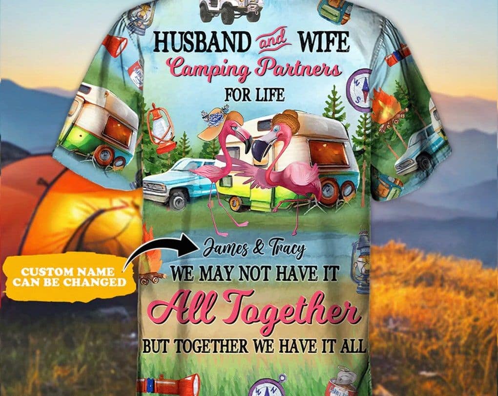 Flamingo Husband And Wife Shirt And Beach Short, Tropical Beach Shirt Button Down Shirt, Gift For Family, Hawaii Shirt Party Summer.