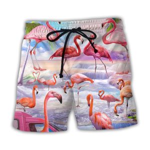 You’re viewing Flamingo In The Paradise Cool Style Trendy KLA Hawaiian Beach Shorts.