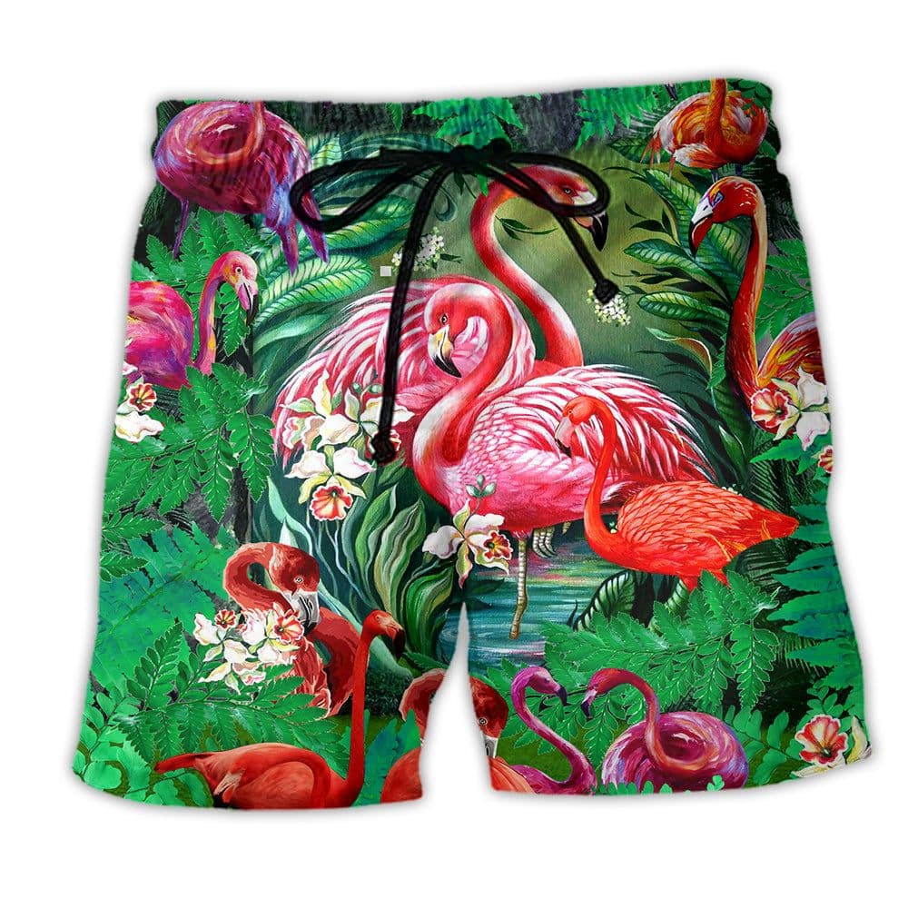 Flamingo Love Life Floral Trendy KLA Hawaiian Beach Shorts