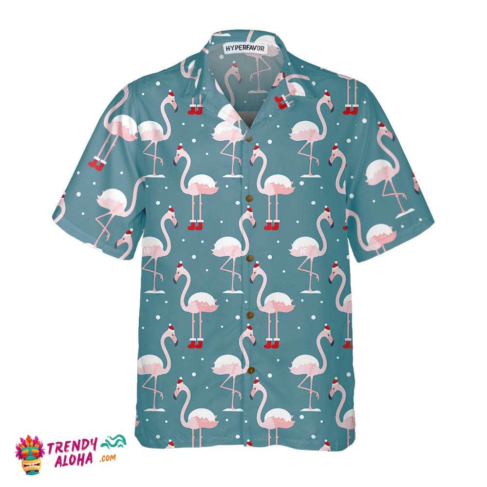 Flamingo On Christmas Holiday Hawaiian Shirt, Flamingo In Santa Hat Christmas Shirt, Best Xmas Gift Idea