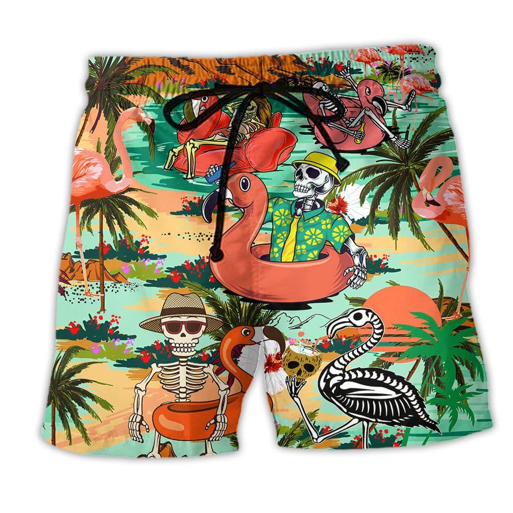 Flamingo Skull In Hawaii Tropical Summer Trendy KLA Hawaiian Beach Shorts