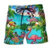 Flamingo Slow Down Enjoy The Moment Lotus Trendy KLA Hawaiian Beach Shorts