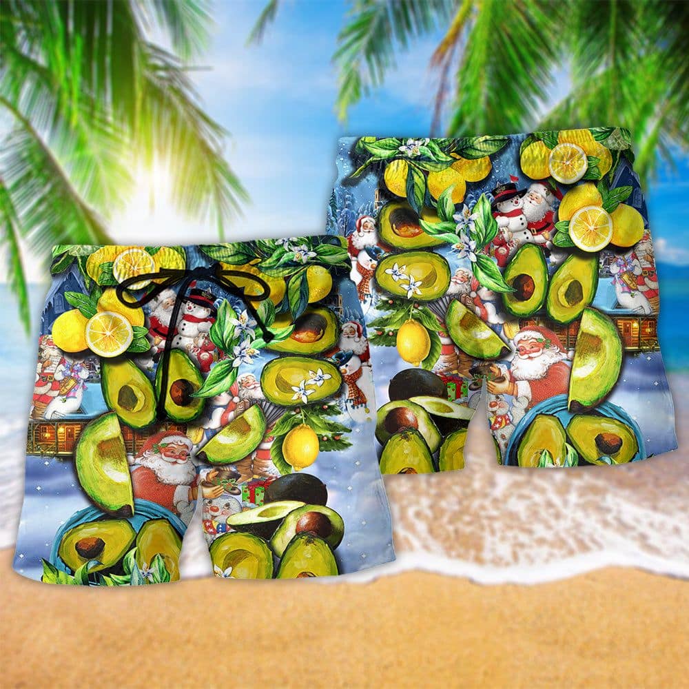 Fruit Avocado Lemon Summer Time Xmas Christmas Trendy KLA Hawaiian Beach Shorts