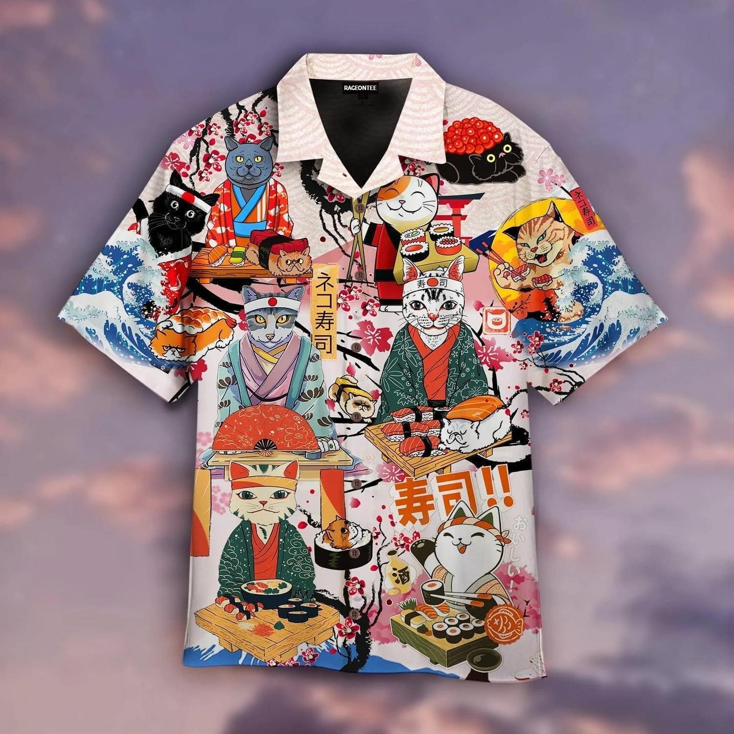 Funny Cat Eat Sushi Japanese Trendy Hawaiian Shirt For
