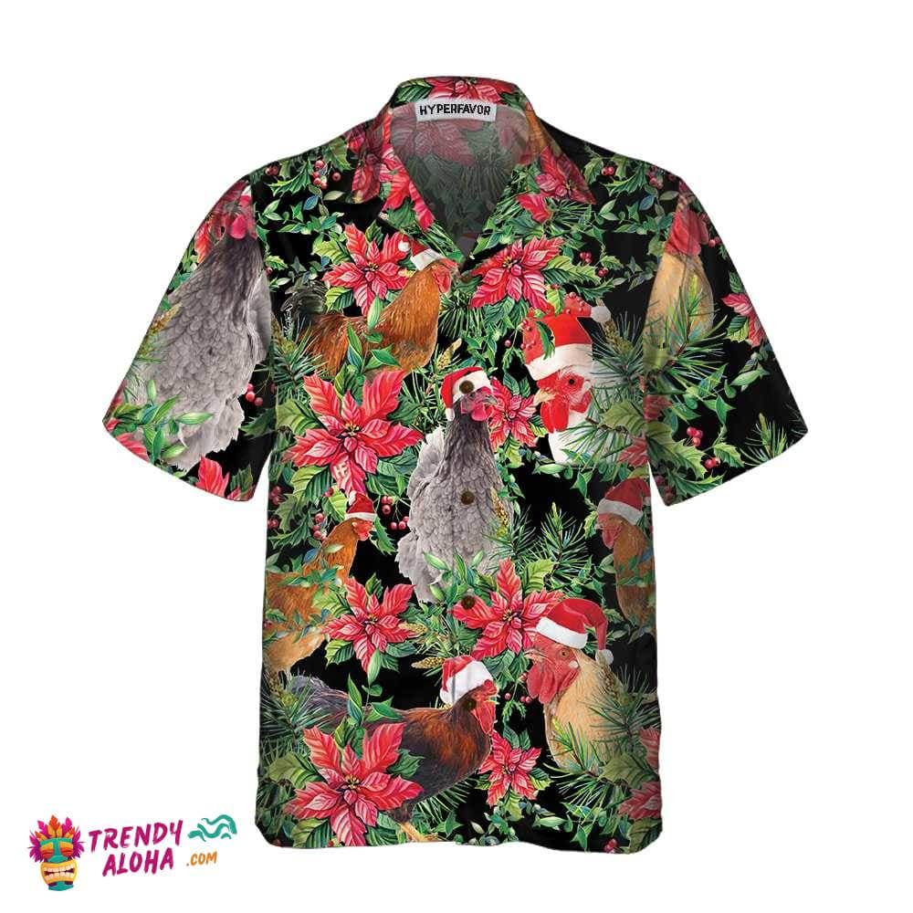 You’re viewing Funny Chicken With Christmas Plants Hawaiian Shirt.