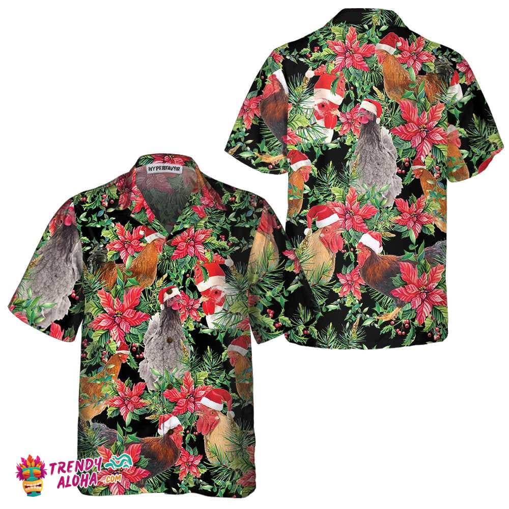 Funny Chicken With Christmas Plants Hawaiian Shirt