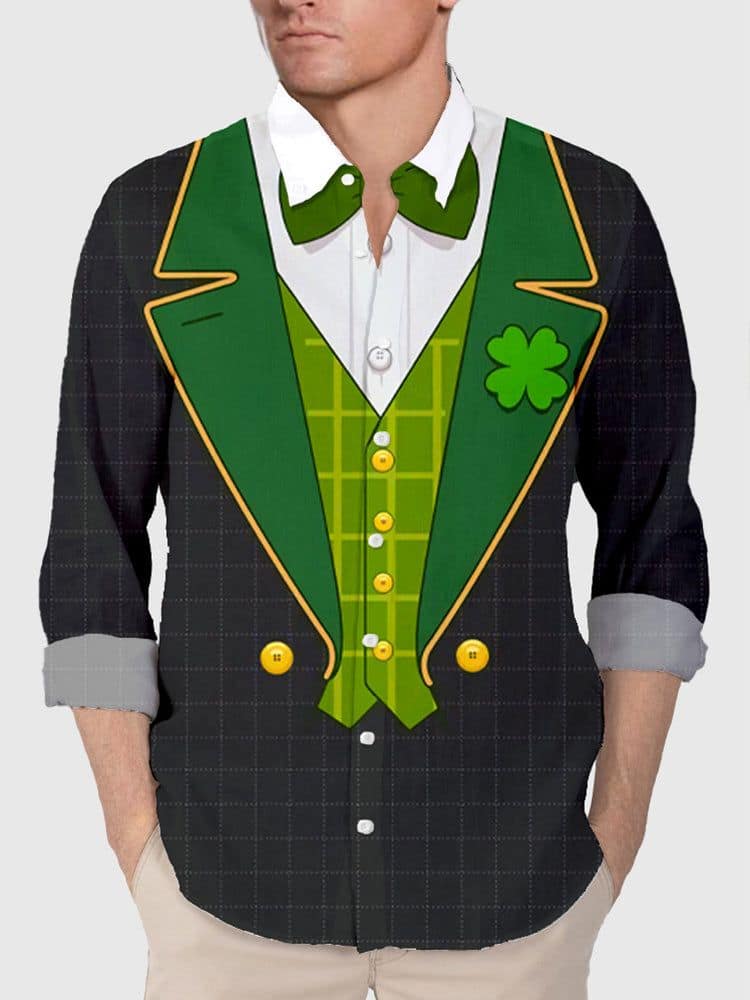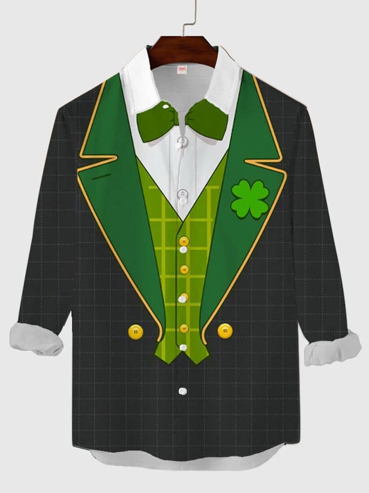 Funny Tuxedo Irish Leprechaun Costume For St. Patrick’s Day Printing Men’s Long Sleeve KLA Hawaiian Shirt