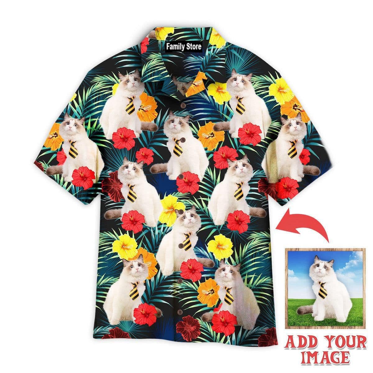 Be the first to review “Funny White Cat Sitting Beside Tropical Floral Custom Hawaiian Shirt” Cancel reply